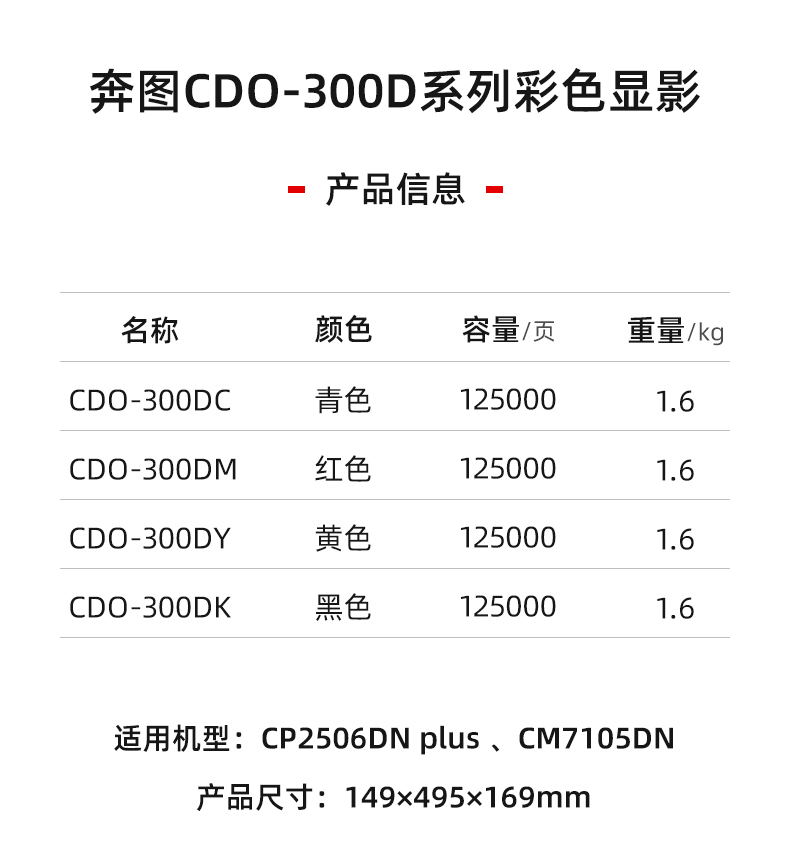 • 適用機型:適用于(CP2300DN/CP2506DN PLUS/CM7105DN)