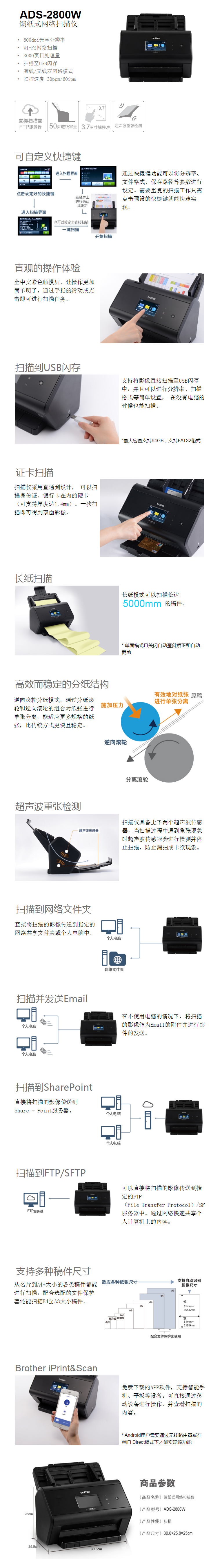 - 商品名稱(chēng):兄弟 (brother) ADS-2800W A3饋紙式網(wǎng)絡(luò)掃描儀 有線(xiàn)/無(wú)線(xiàn) 雙面掃描 600*600dpi 掃描至USB閃存 掃描速度30ppm/60ipm 一年保修