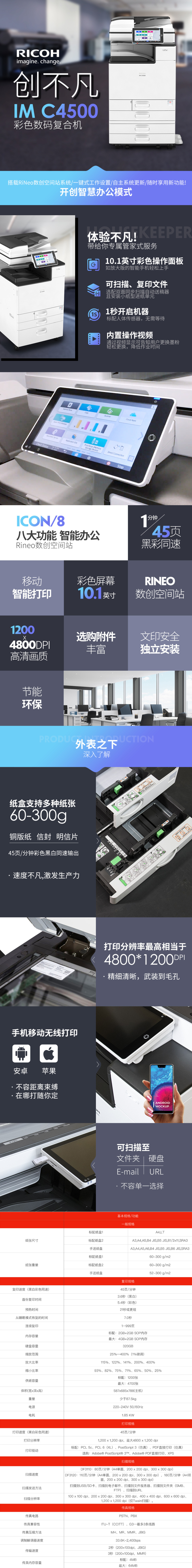 - 商品名稱:理光(Ricoh)IM C4500 A3彩色多功能數(shù)碼復(fù)合機(jī)(主機(jī)+送稿器+四紙盒)