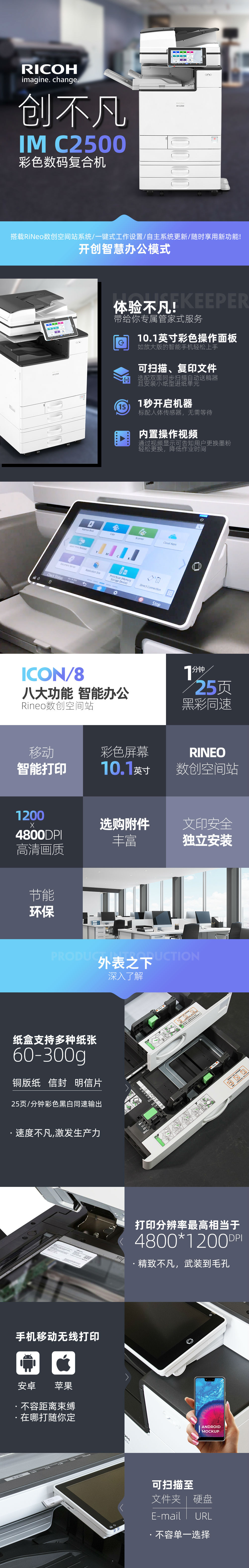 理光 IMC2500 彩色數(shù)碼復(fù)合機(jī)(主機(jī)+自動(dòng)雙面送稿器+四紙盒+網(wǎng)絡(luò)打印掃描+工作臺(tái)+1年保修)