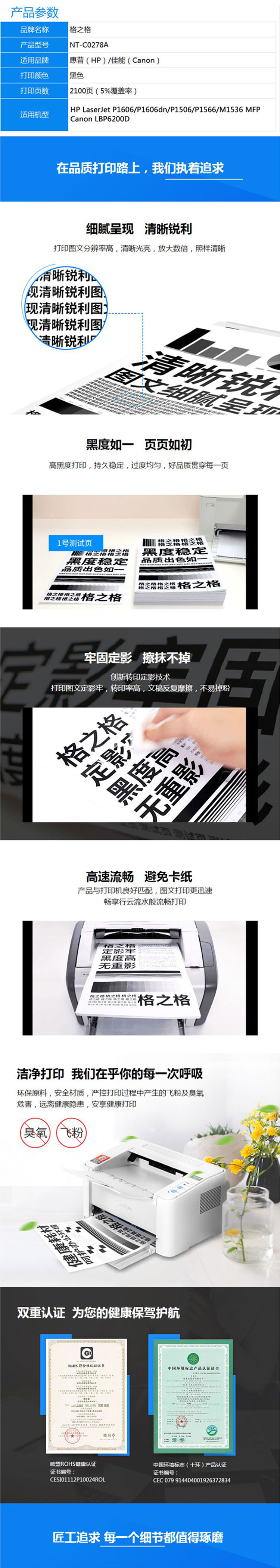 - 型號(hào):格之格硒鼓 NT-C0278A 適用型號(hào)HP LaserJet P1606/P1560/P1566/M1536MFP Canon LBP6200D 黑色