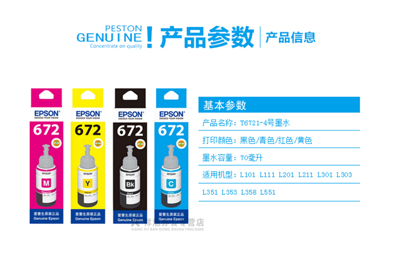 愛普生T6721黑色墨水瓶(適用L220/L310/L313/L211/L360/L380/L455/L385/L485/L565)