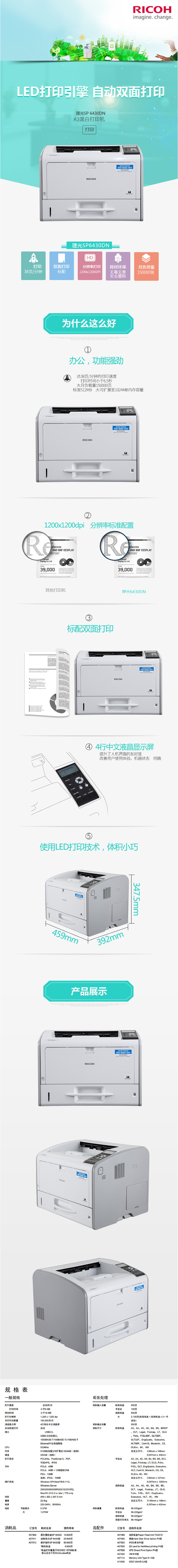 • 商品名稱:理光(Ricoh)SP6430DN A3黑白激光打印機(jī)
