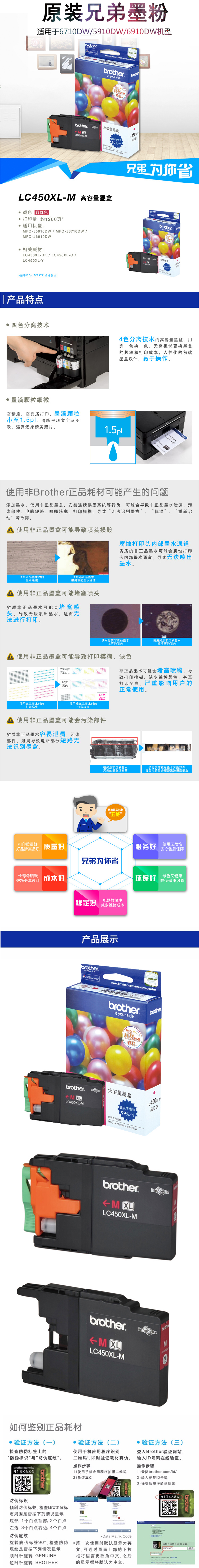 - 商品名稱:兄弟(brother)LC-450XLM 紅色高容墨粉 適用6710DW/5910DW/6910DW機(jī)型