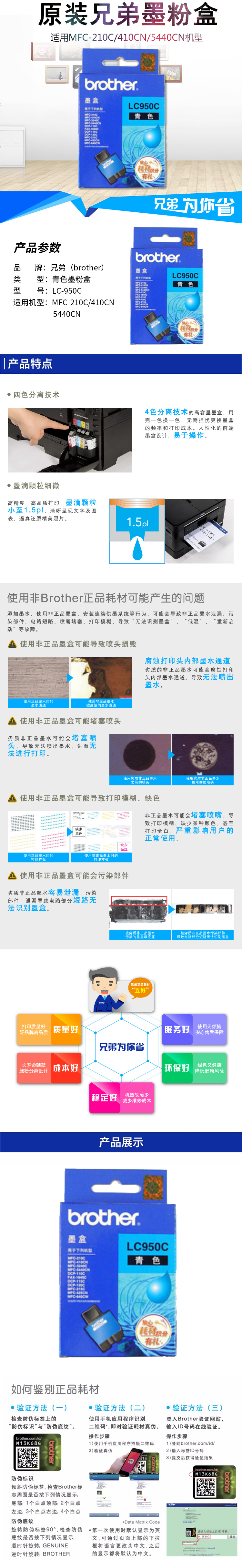 - 商品名稱:兄弟(brother)LC-950C 青色墨粉盒 約400頁(yè) 適用MFC-210C/410CN/5440CN機(jī)型