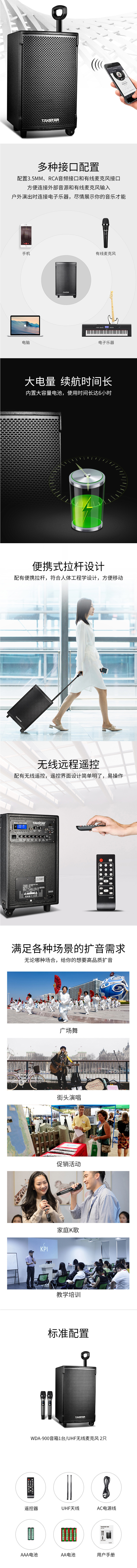 • 商品名稱:得勝(TAKSTAR)WDA-900 廣場舞音響 無線藍牙拉桿音箱 戶外便攜式音響 大功率帶無線UHF麥克風擴音器
