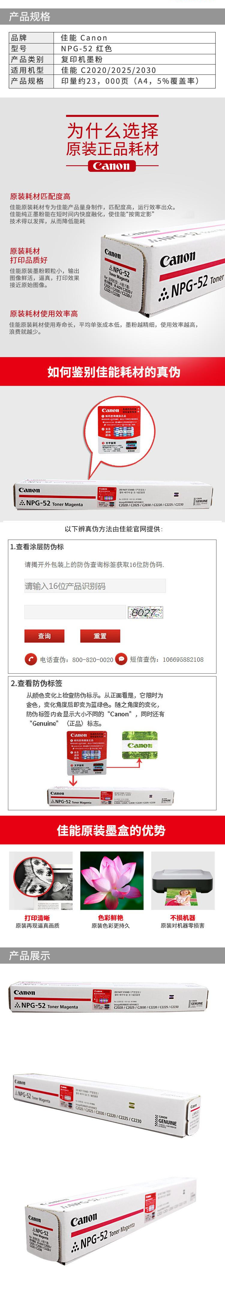 • 商品名稱:佳能(Canon)NPG-52M粉 紅色墨粉盒 適用C2020/2025 打印量23000頁