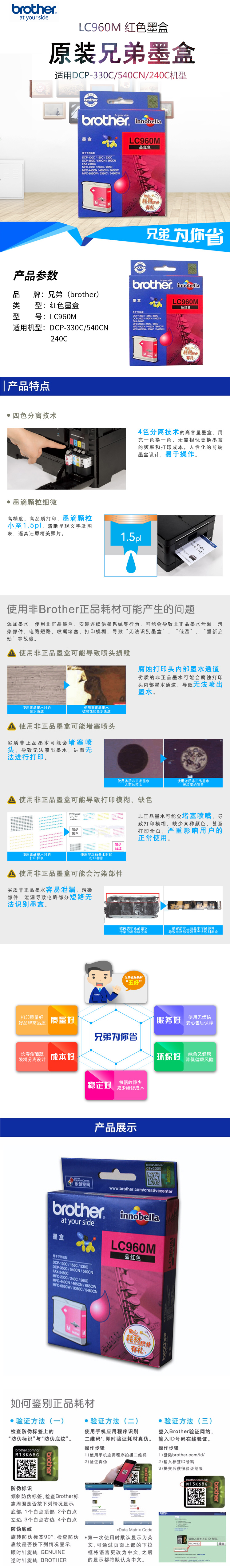 • 商品名稱:兄弟(brother)LC960M 紅色墨盒(適用DCP-330C/540CN/240C機型)