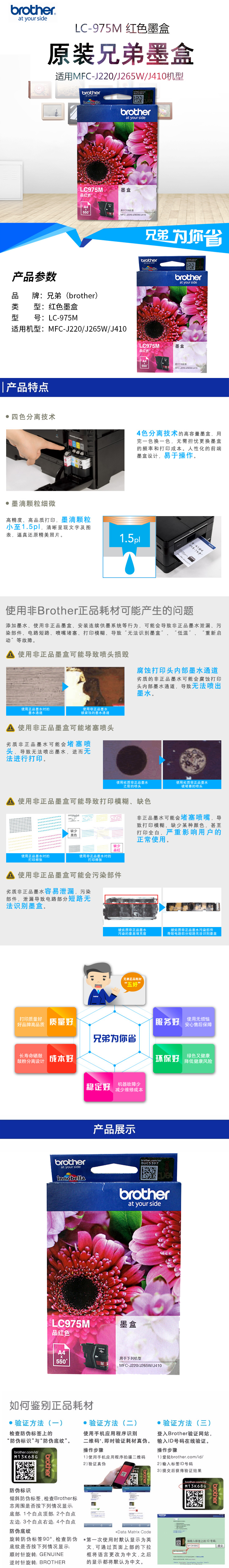 - 商品名稱:兄弟(brother)LC-975M 紅色墨盒(適用MFC-J220/J265W/J410機(jī)型)