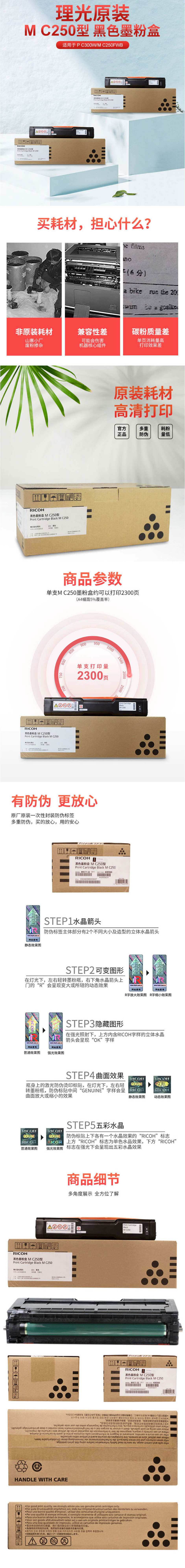 • 商品名稱:理光(Ricoh)黑色墨粉盒M C250型 適用于P C300W/M C250FWB(2300頁印量)