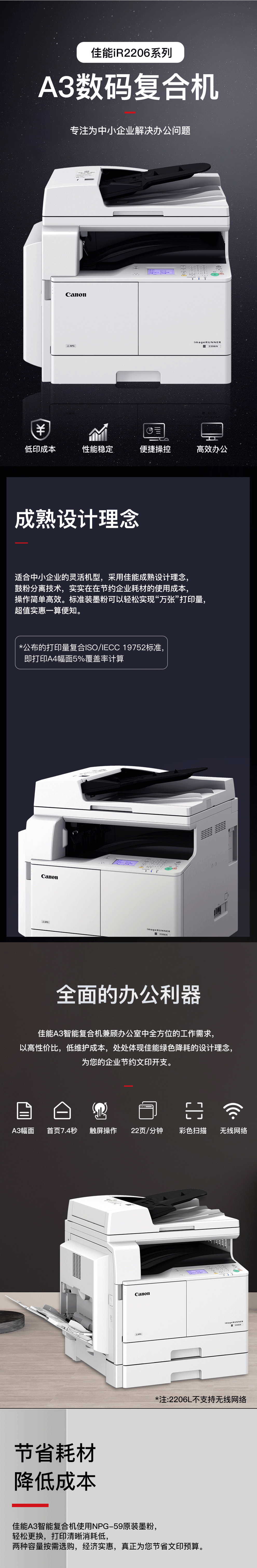 • 商品名稱:佳能(Canon)iR2206L A3黑白激光數(shù)碼復(fù)合機(jī) 含蓋板(打印/復(fù)印/掃描)