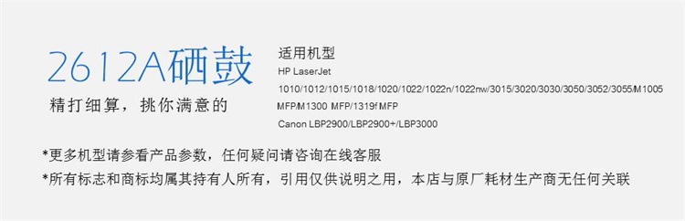 • 適用機(jī)型:適用hp q2612a 2612a 惠普1020plus 1010 3015佳能303 lbp2900
