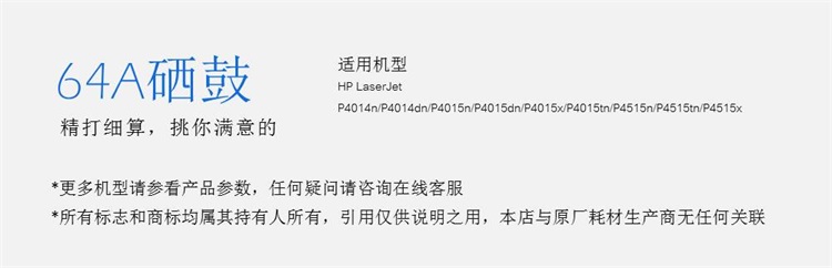 • 適用機(jī)型:適用于HP LaserJet P4014n/P4014dn/P4015n/P4015dn/P4015x/P4015tn/P4515n/P4515tn/P4515x