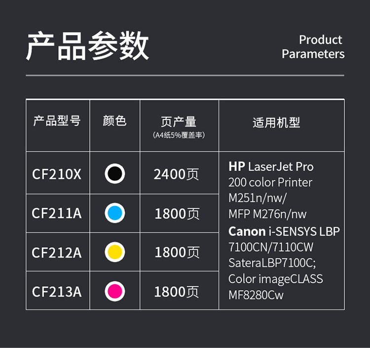 適用機(jī)型:HP LaserJet Pro 200 color Printer M251n/nw/MFP M276n/nw Canon LBP7110Cw/LBP7100Cn/iCMF8280Cw/iCMF8250Cn/iCMF8230Cn/iCMF8210Cn/iCMF628Cw/iCMF626Cn/iCMF623Cn/iCMF621Cn