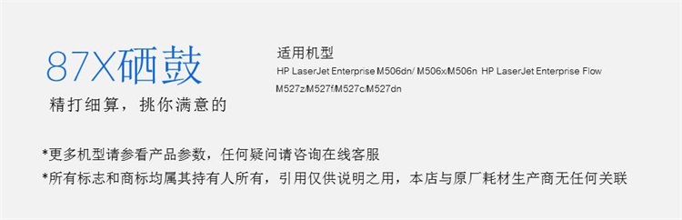 • 適用機(jī)型:HP LaserJet Enterprise M506dn/ M506x/M506n HP LaserJet Enterprise Flow M527z/M527f/M527c/M527dn