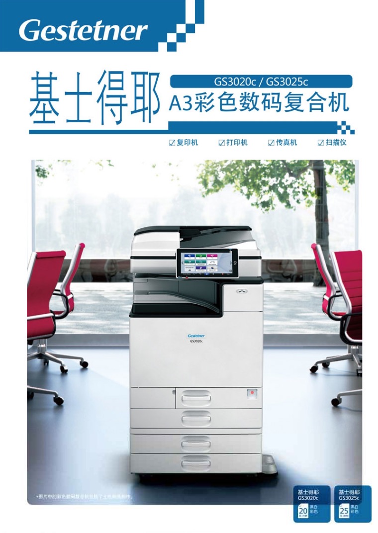基士得耶(GESTETNER)GS3025c A3彩色多功能數(shù)碼復合機(主機+送稿器+標配雙紙盒)