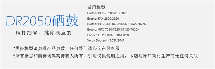 • 適用機(jī)型:適用于Brother DCP 7020/7010/7025/ Brother FAX 2820/2920/ Brother HL 2030/2040/2070N /2045/2075N/ Brother MFC 7220/7225N/7420/7820N/Lenovo LJ 2000/M7020/M3120/ Xerox Docuprin