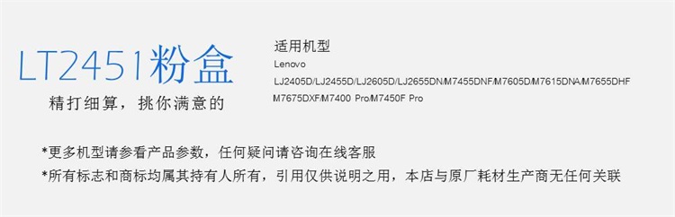 • 適用機型:Lenovo LJ2405D/LJ2455D/LJ2605D/LJ2655DN/M7455DNF/M7605D/M7615DNA/M7655DHF M7675DXF/M7400 Pro/M7450F Pro