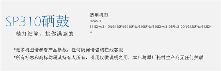 • 適用機型:Ricoh SP 311DNw/311DN/311SFN/311SFNw/310SFNw/310DNw/310SFN/310DN/312SFNw/312DNw