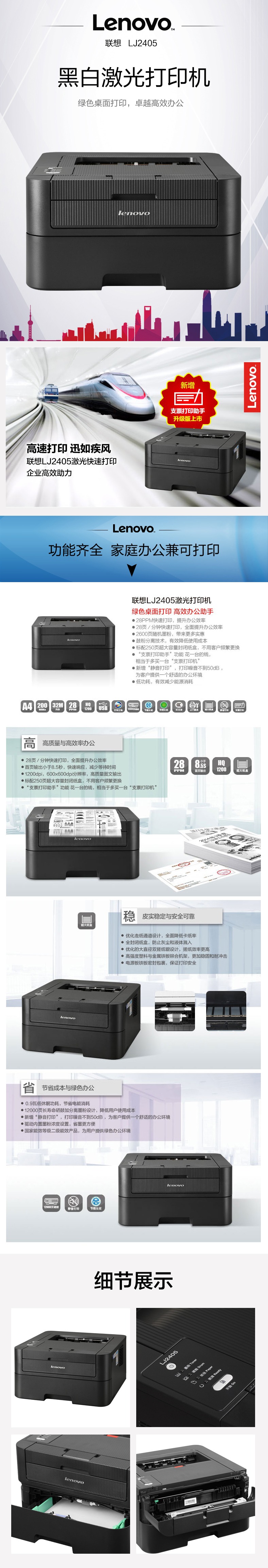 - 商品名稱:聯(lián)想(Lenovo) LJ2405 黑白激光打印機(jī) A4 幅面單打印 三年保修 黑色