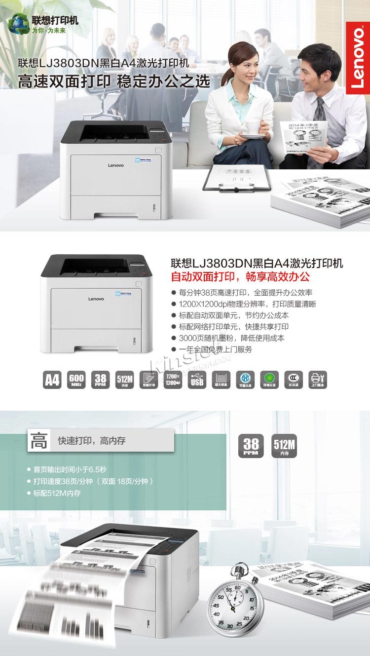 • 商品名稱:聯(lián)想(Lenovo)LJ3803DN A4幅面 黑白激光打印機(jī)(雙面打印/有線網(wǎng)絡(luò)打?。?/li>
