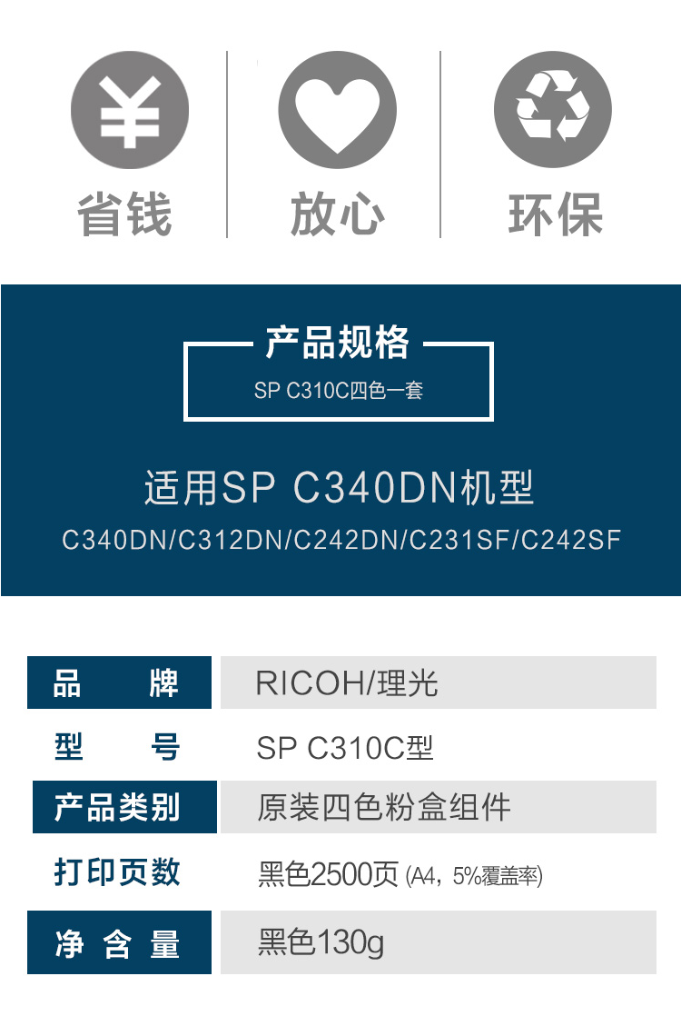 • 商品名稱:理光(Ricoh)藍色墨粉盒SP C310C型 適用于SP C340DN