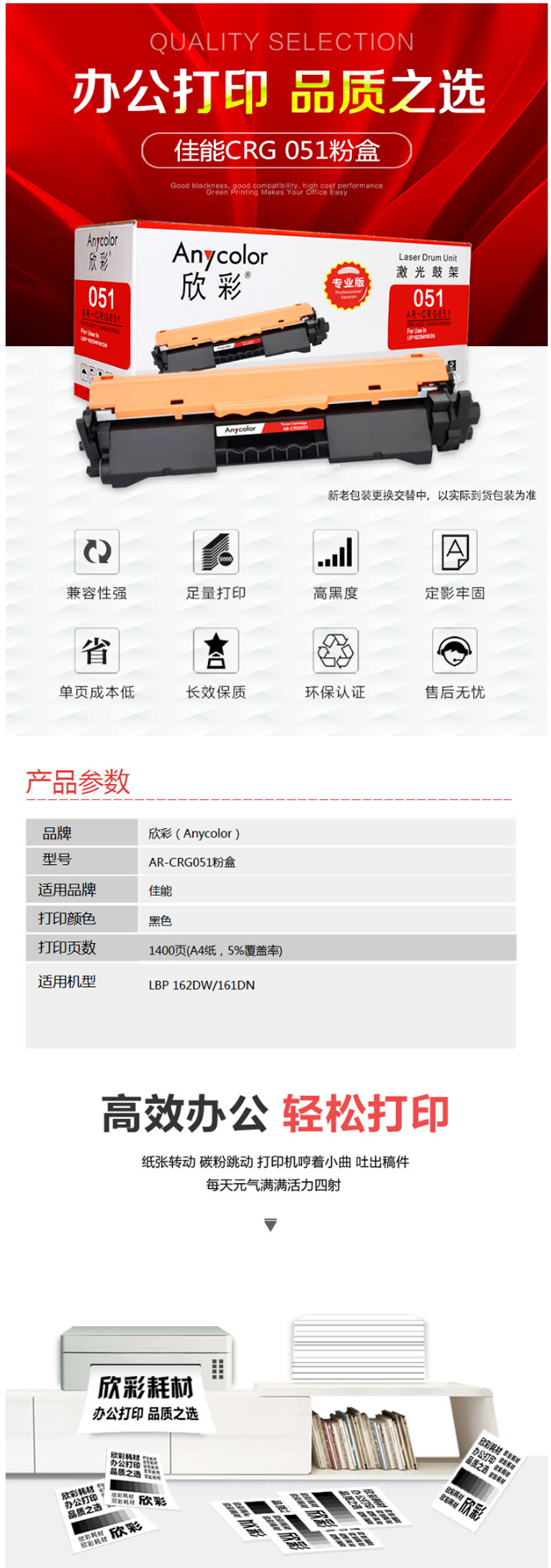 • 商品名稱:欣彩(Anycolor)AR-CRG051 粉盒 適用于佳能Canon LBP 162DW 161DN