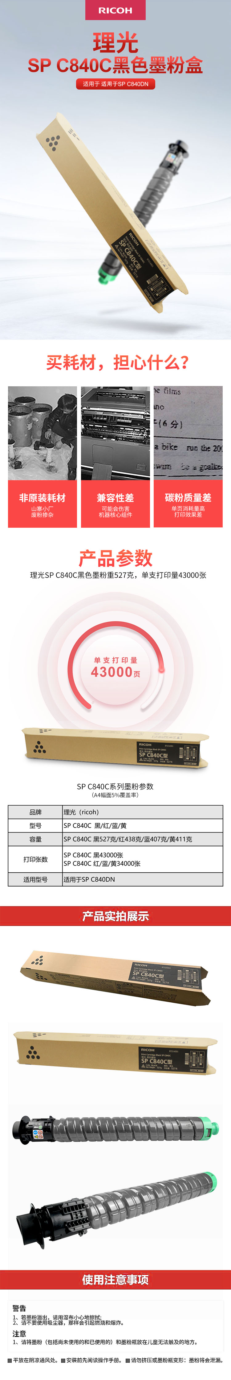 • 商品名稱:理光(Ricoh)黑色墨粉盒SP C840C型 43,000頁 適用于SP C840DN