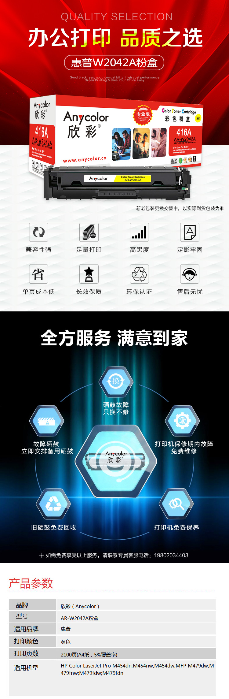 - 商品名稱:欣彩(Anycolor) W2042A粉盒 專業(yè)版 AR-W2042A黃色 416A不帶芯片 適用惠普M454dn M454nw M479dw M479fnw fdw fdn