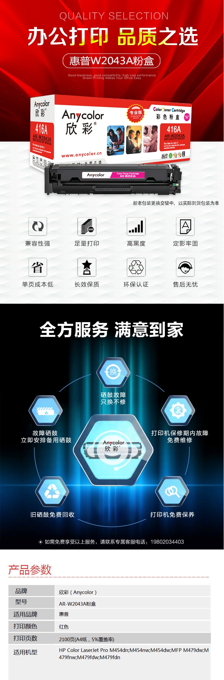 - 商品名稱:欣彩(Anycolor) W2043A粉盒 專業(yè)版 AR-W2043A紅色 416A不帶芯片 適用惠普M454dn M454nw M479dw M479fnw fdw fdn