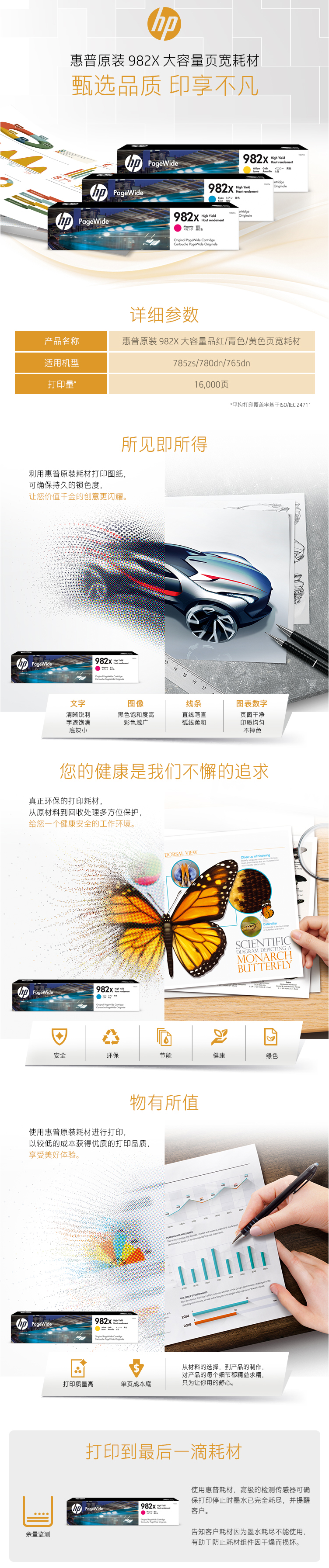 - 商品名稱:惠普(HP) 頁寬打印機墨盒 982X青色大容量頁寬打印耗材T0B27A 16000頁 適用于HP PageWide Enterprise 765系列(765dn); HP PageWide Enterprise 780系列(780dn); HP PageWide Enterprise 785系列(785zs)
