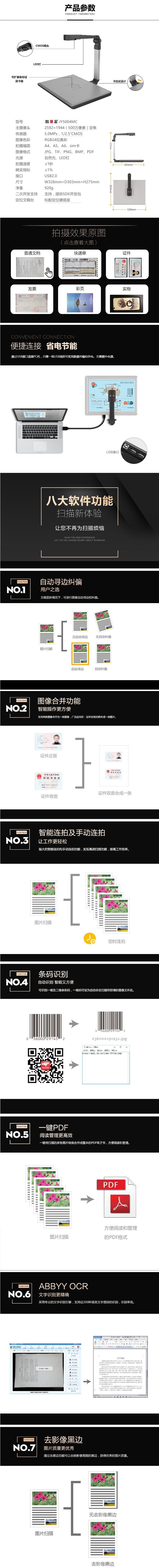 - 商品名稱:捷宇 JYP6008T-100U A4高拍儀帶專用固定底座 1秒/頁 可掃描黑白/灰色/彩色 雙攝像頭高清 500萬像素+200萬像素 已內(nèi)置身份證閱讀器,可識別身份證信息