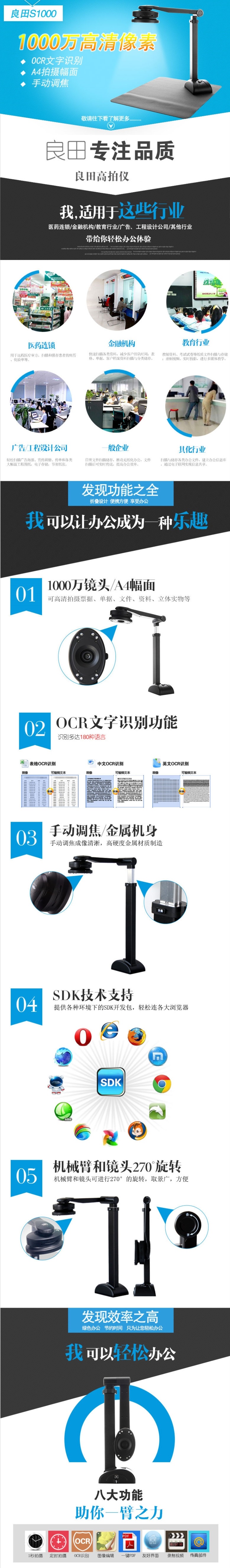 - 商品名稱:良田(eloam)S1000 高拍儀 1000萬像素 可手動(dòng)調(diào)焦 高清高速掃描儀 OCR識(shí)別 一鍵PDF 文件掃描 色彩24位 分辨率3648×2736dpi