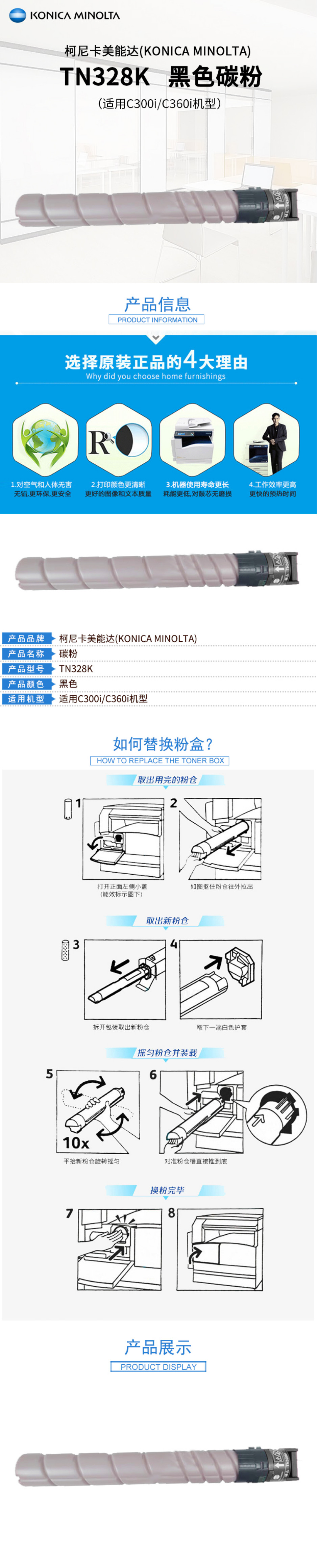 - 商品名稱:柯尼卡美能達(dá)KONICA MINOLTA TN328K 黑色碳粉 適用于C300i/C360i機(jī)型
