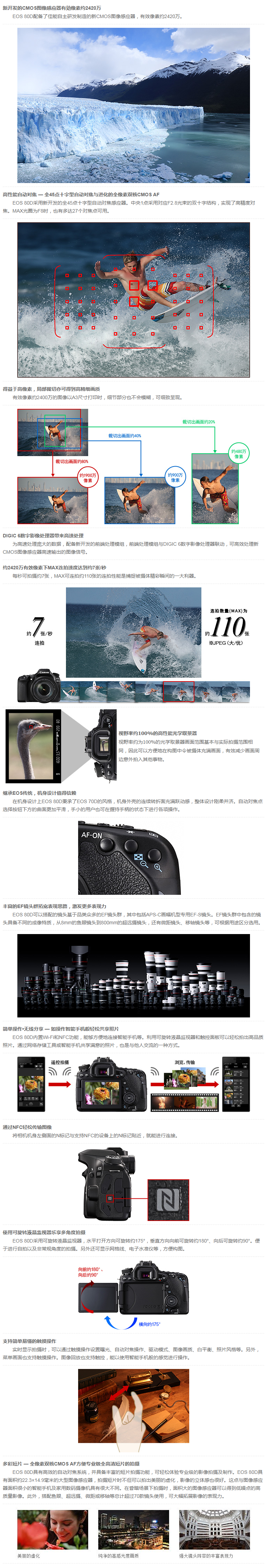 • 商品名稱:佳能(Canon)EOS 80D 單反機(jī)身 2420萬有效像素 雙核CMOS 45點(diǎn)十字對焦 WIFI/NFC
