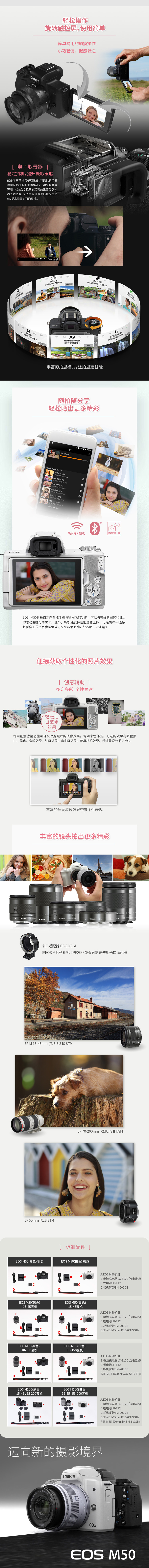 • 型號(hào):EOS M50 套機(jī)(黑)EF-M18-150MM F/3.5-6.3 IS STM