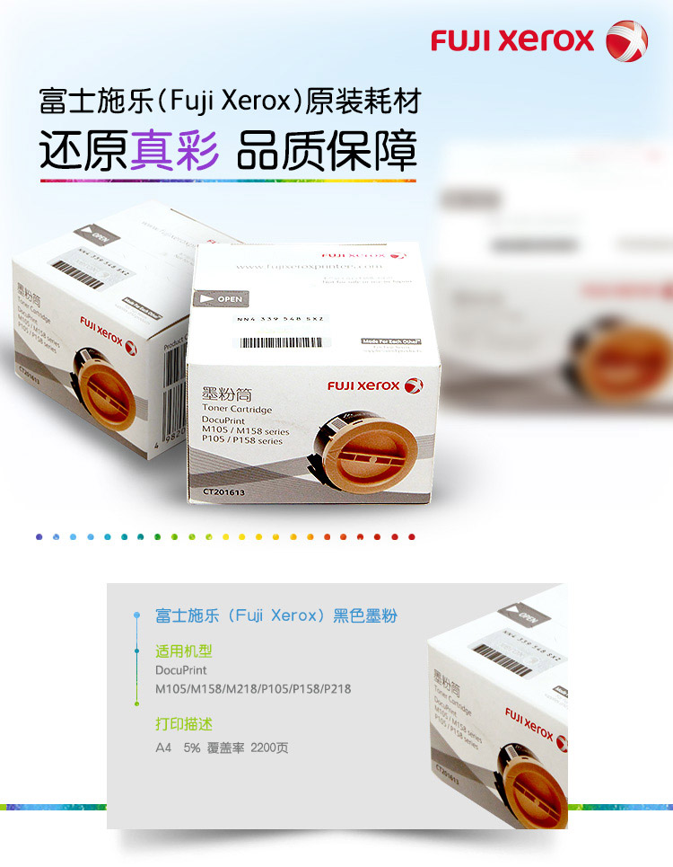 - 商品名稱:富士施樂(lè)(Fuji Xerox) CT201613 墨粉筒 適用于FUJI xerxo DocuPrint P105/158/218 黑色 2200頁(yè)打印量