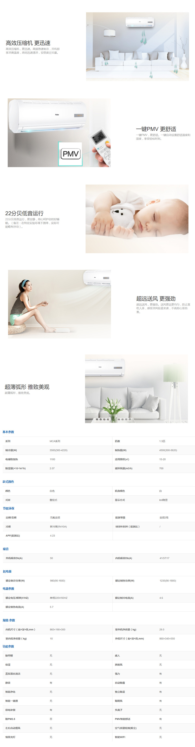 • 商品名稱:海爾/Haier 變頻冷暖1.5P掛機KFR-35GW/20MCA22A 空調(diào) 2級能效
