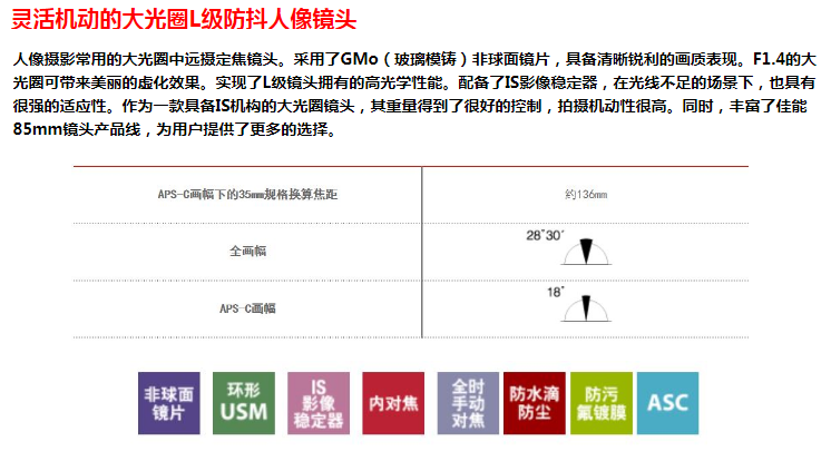 • 型號:EF 85MM F/1.4L IS USM