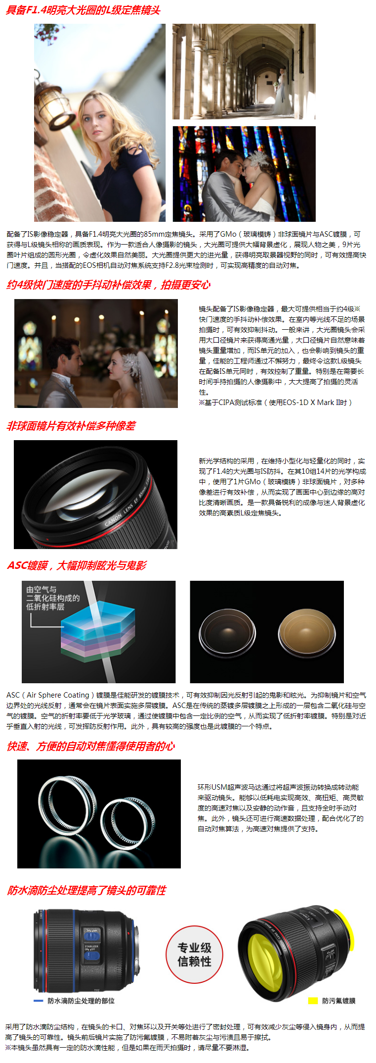 佳能(Canon)EF 85MM F/1.4L IS USM 單反鏡頭 中遠(yuǎn)攝定焦鏡頭