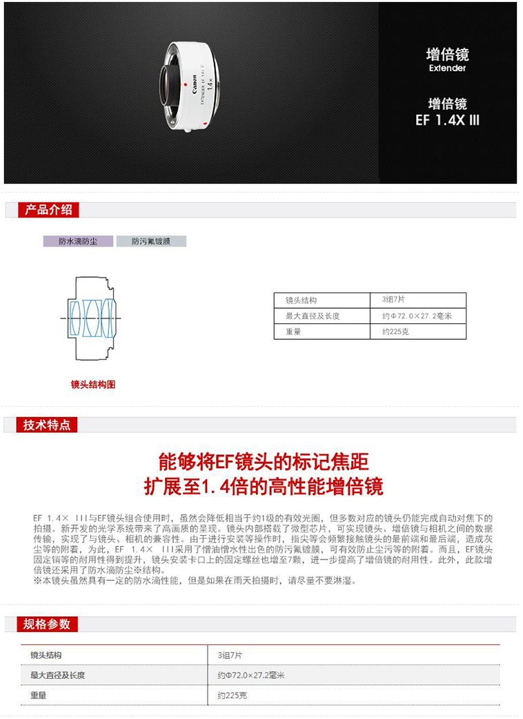 • 規(guī)格:增倍鏡 EF 1.4XIII