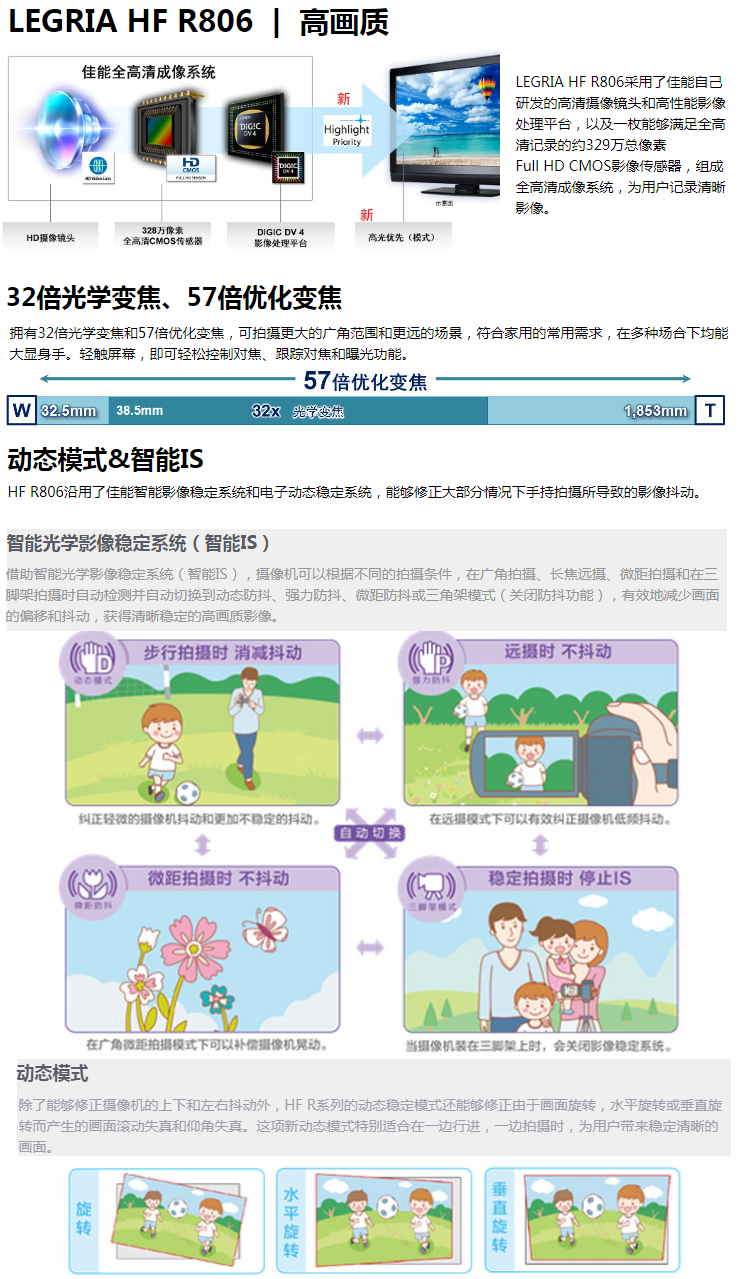 佳能(Canon)LEGRIA HFR806 黑色高清數(shù)碼攝像機(jī) 57倍長焦防抖