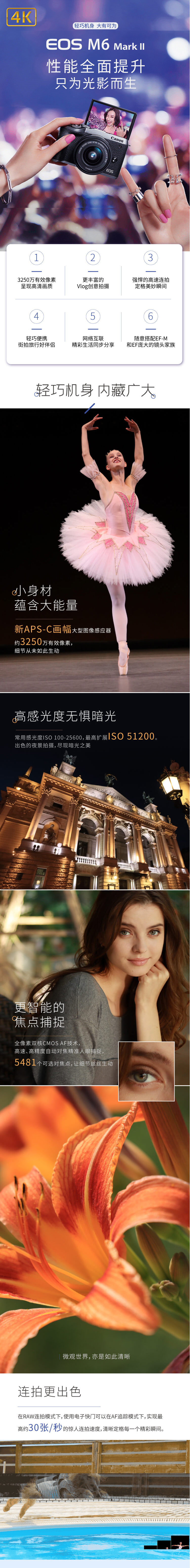 - 商品名稱:佳能(Canon)EOS M6 Mark II黑色套機 含EF-M15-45MM F/3.5-6.3 IS STM鏡頭 3250萬像素 觸控翻轉(zhuǎn)LCD