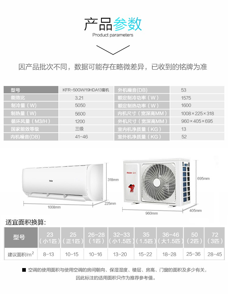 - 商品名稱:海爾/Haier 定頻冷暖3P掛機(jī)KFR-72GW/19HDA12 空調(diào) 2級(jí)能效