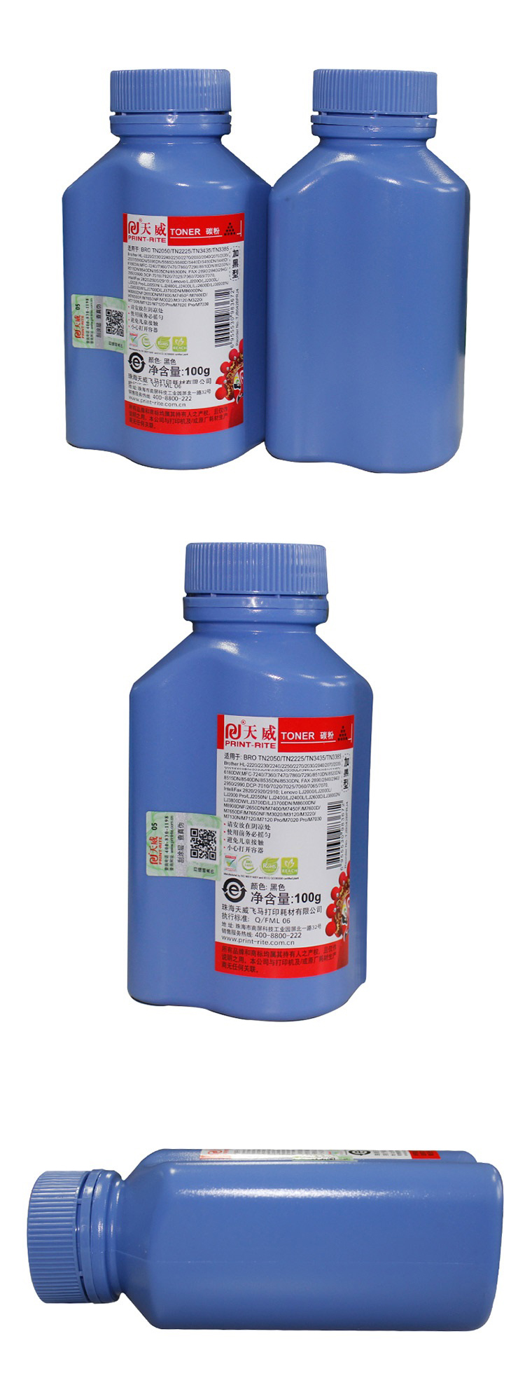 天威(PrintRite)TN2050/2225通用加黑碳粉 藍瓶裝 100G 適用于兄弟 TN-2225/LT2441 /TN2050/TN3435/TN3385