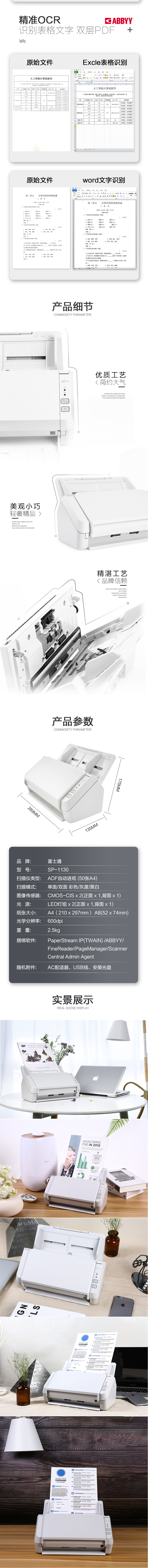 富士通(Fujitsu)SP-1130掃描儀 A4高速雙面自動(dòng)進(jìn)紙饋紙式 25頁(yè)/50面每分鐘