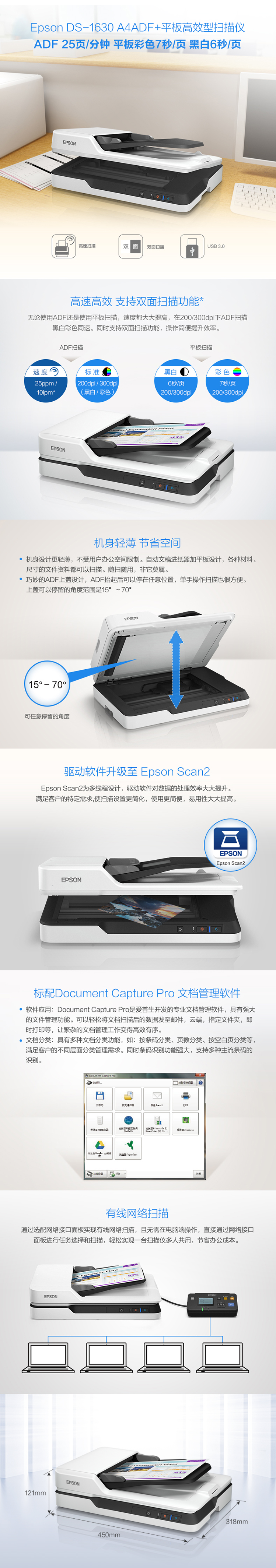 愛普生(EPSON) DS-1630 高速A4文檔自動(dòng)進(jìn)紙+平臺(tái)彩色連續(xù)掃描儀