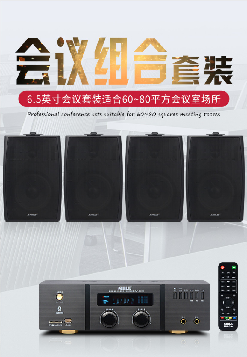 獅樂 會(huì)議室音響套裝組合 USB藍(lán)牙功放壁掛音響真U段無線話筒 2011B+18+105*4