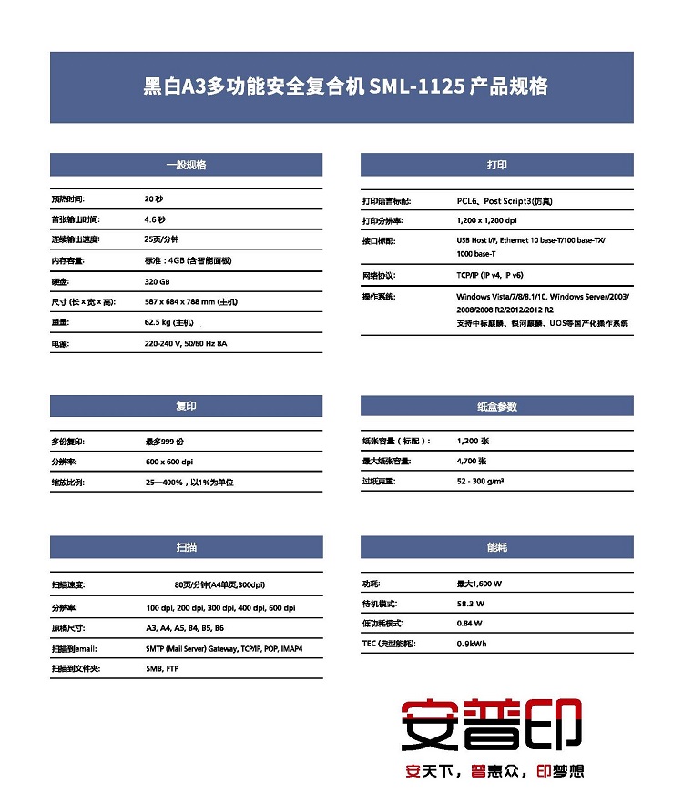 • 商品名稱:安普印 A3黑白激光數(shù)碼復(fù)合機(jī)SML-1125 標(biāo)配主機(jī)+輸稿器+雙紙盒+工作臺(tái)