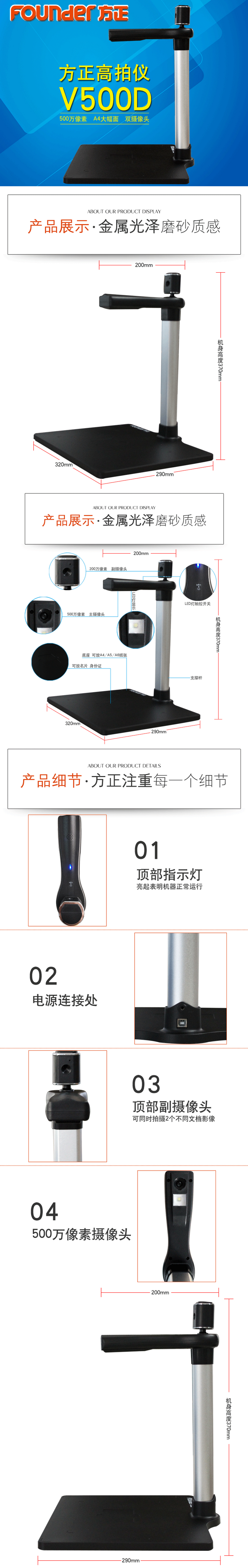 • 商品名稱:方正(Founder)A4幅面高拍儀 黑色 掃描儀V500D 1秒成像 500萬像素